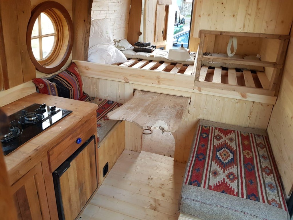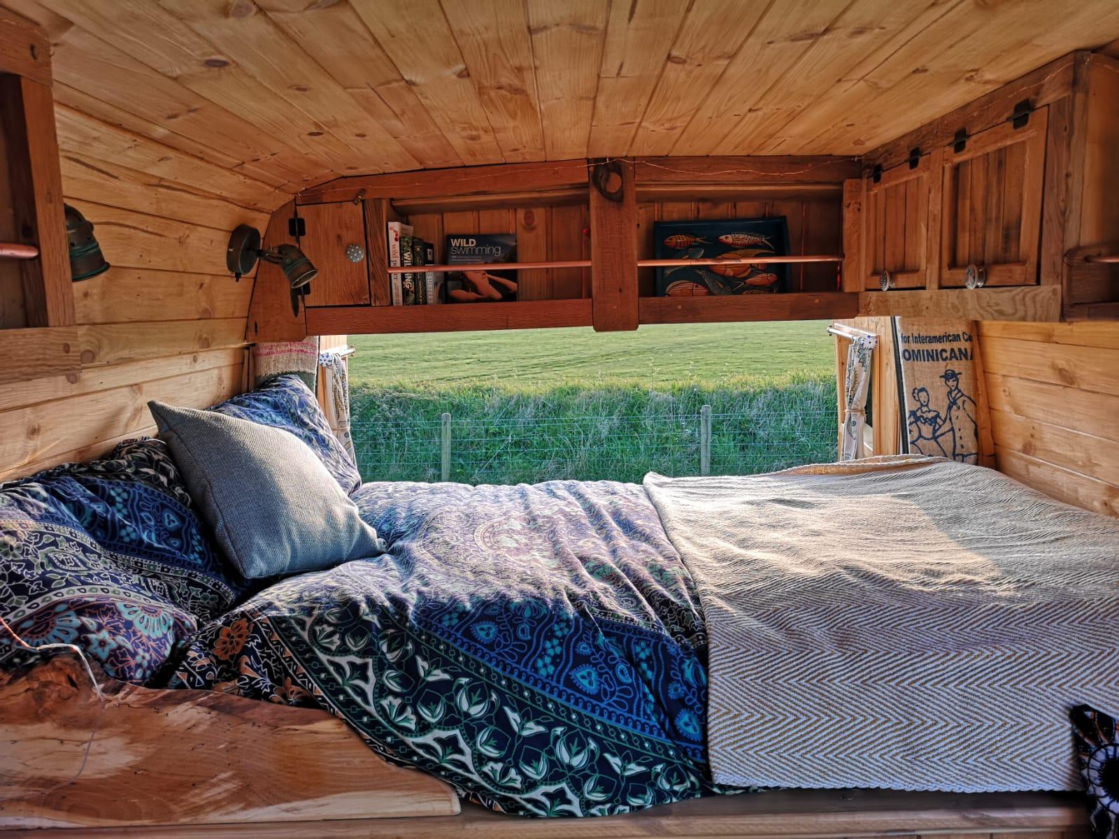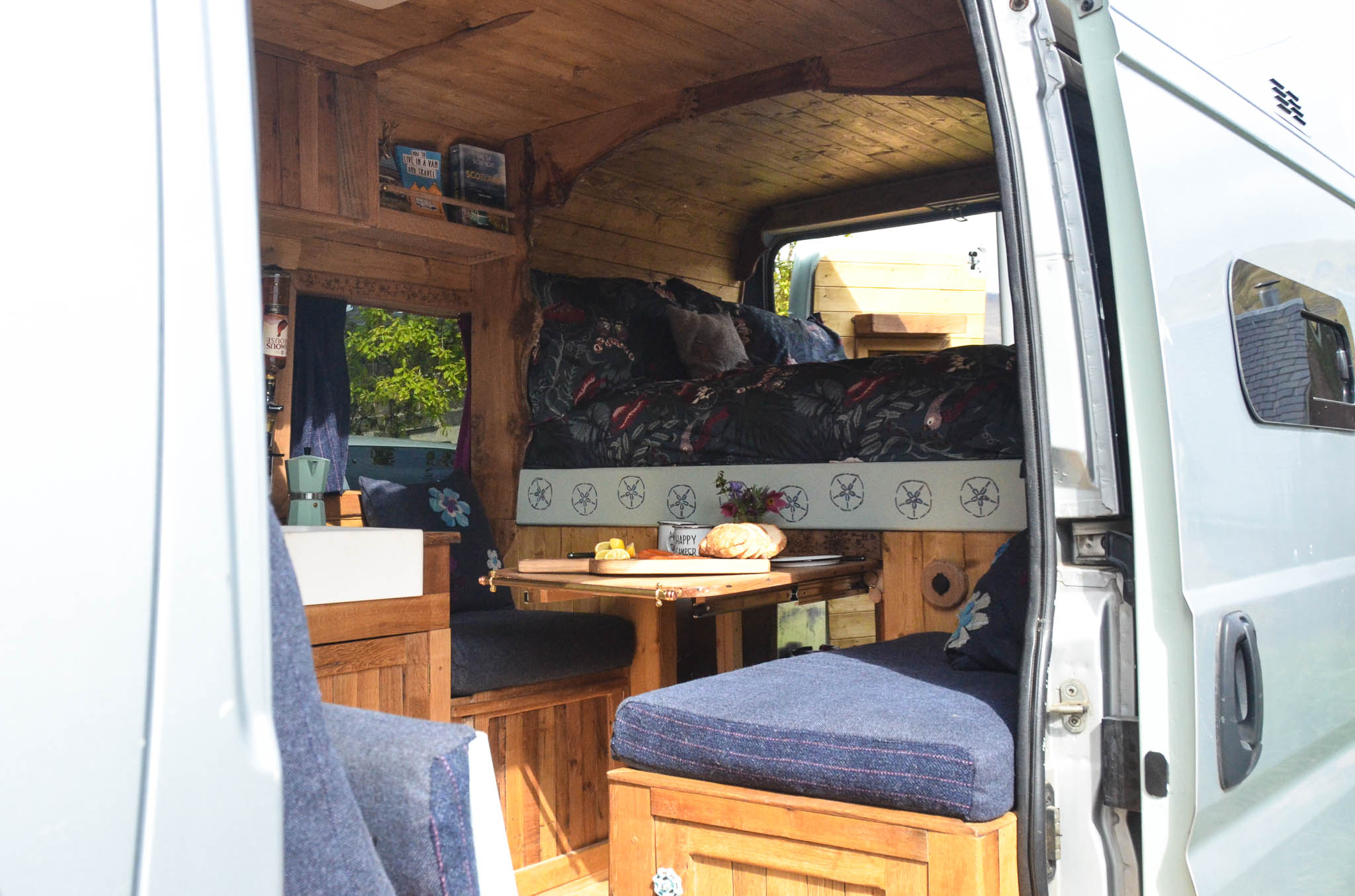 Laura’s beautiful van, Moana, was to be our final commission before we moved on to creating our own designs after making 23 for other people. We had already built Morag for Alice, her sister, and met Laura at Camp Quirky, the hand made campervan festival run by Quirky Campers.