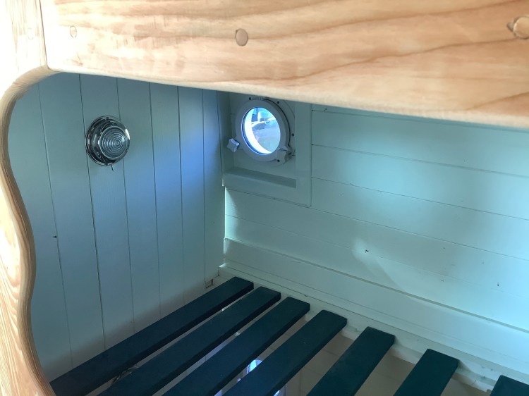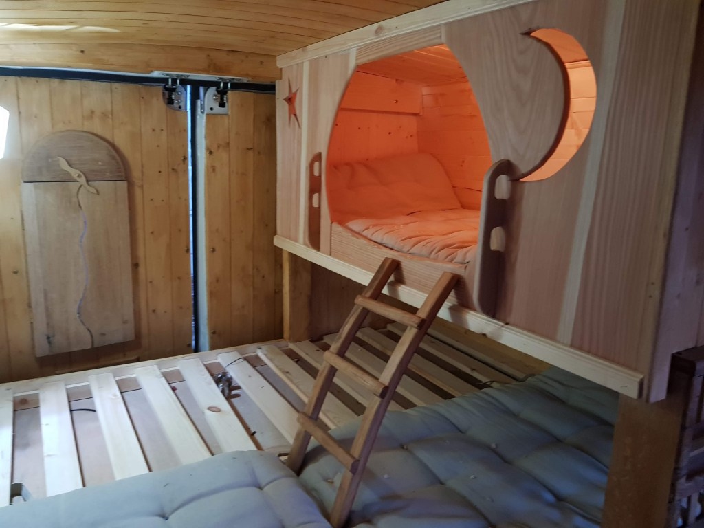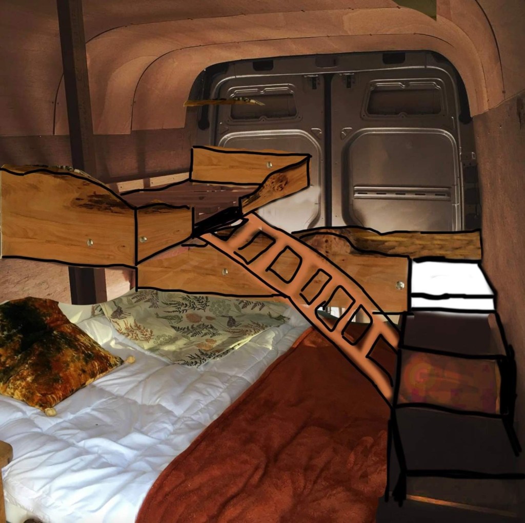 There was to be a fixed bed, and importantly, a space for Lugo below…one of those cute little dog dens!