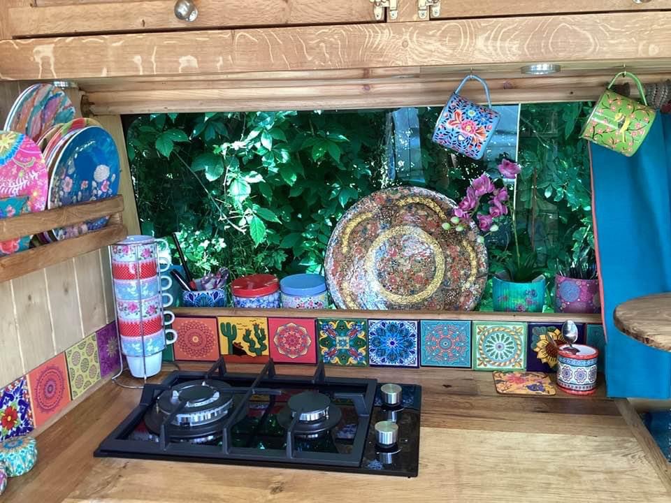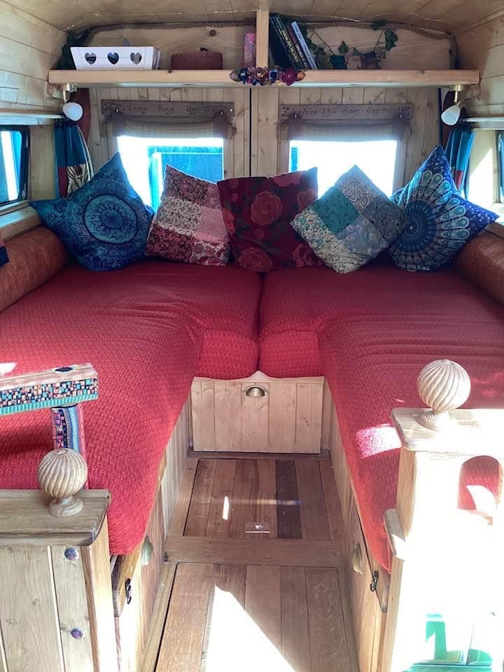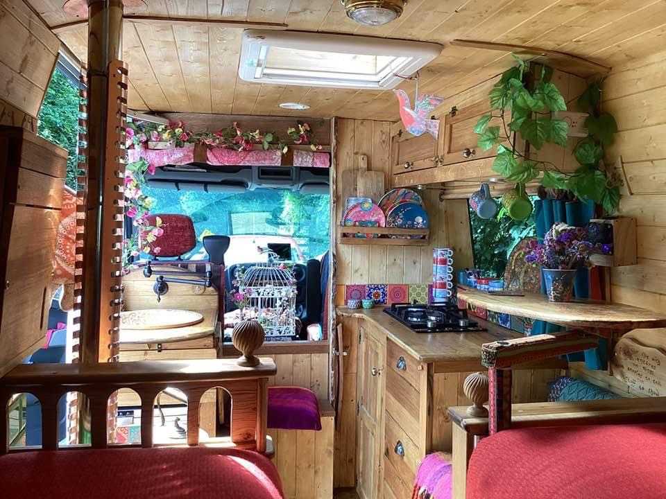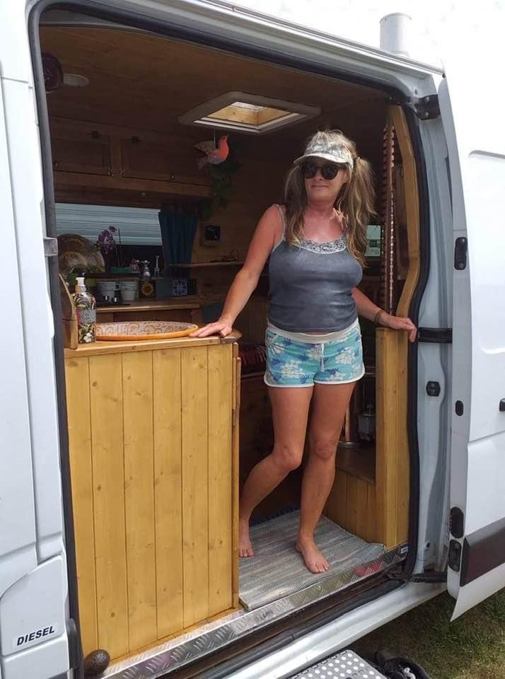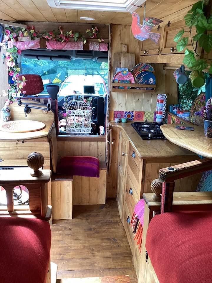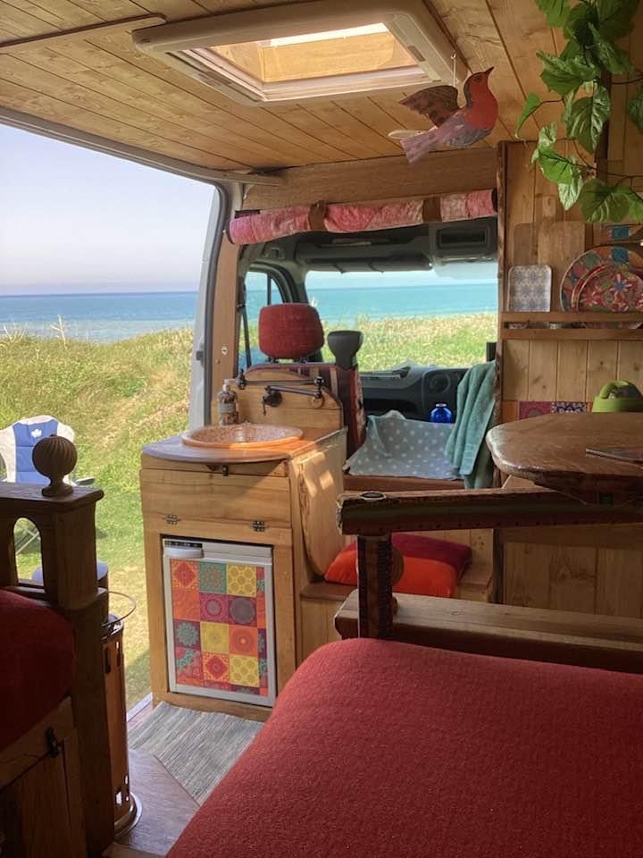 “Our first 3 days away in our new Van (Fable) was magical. Fable is just PERFECT in every way, king size bed, tons of storage, simple toilet system, deep drawers for cloths and kitchen stuff. Huge lockers for bedding, powered by solar panels to run the fridge and lights. Diesel heater and hot plate to boil the kettle and heat crumpets. I drove her back from Bude and she’s a dream to drive. Pete surfed, I swam in the sea. We had an absolute AMAZING meal at the Beach House. Thank you to Anita & James (Rustic-simplicity Campervan Conversions) you have made my DREAM come true. Your workmanship and interior design is faultless, you have thought of everything you could wish for, I wouldn’t change a single thing. I’ve always dreamed of owning a log cabin, this is even better, “a log cabin on wheels”! I love the simplicity of van life, I might even move in, 😂💕 💕❤️😂”